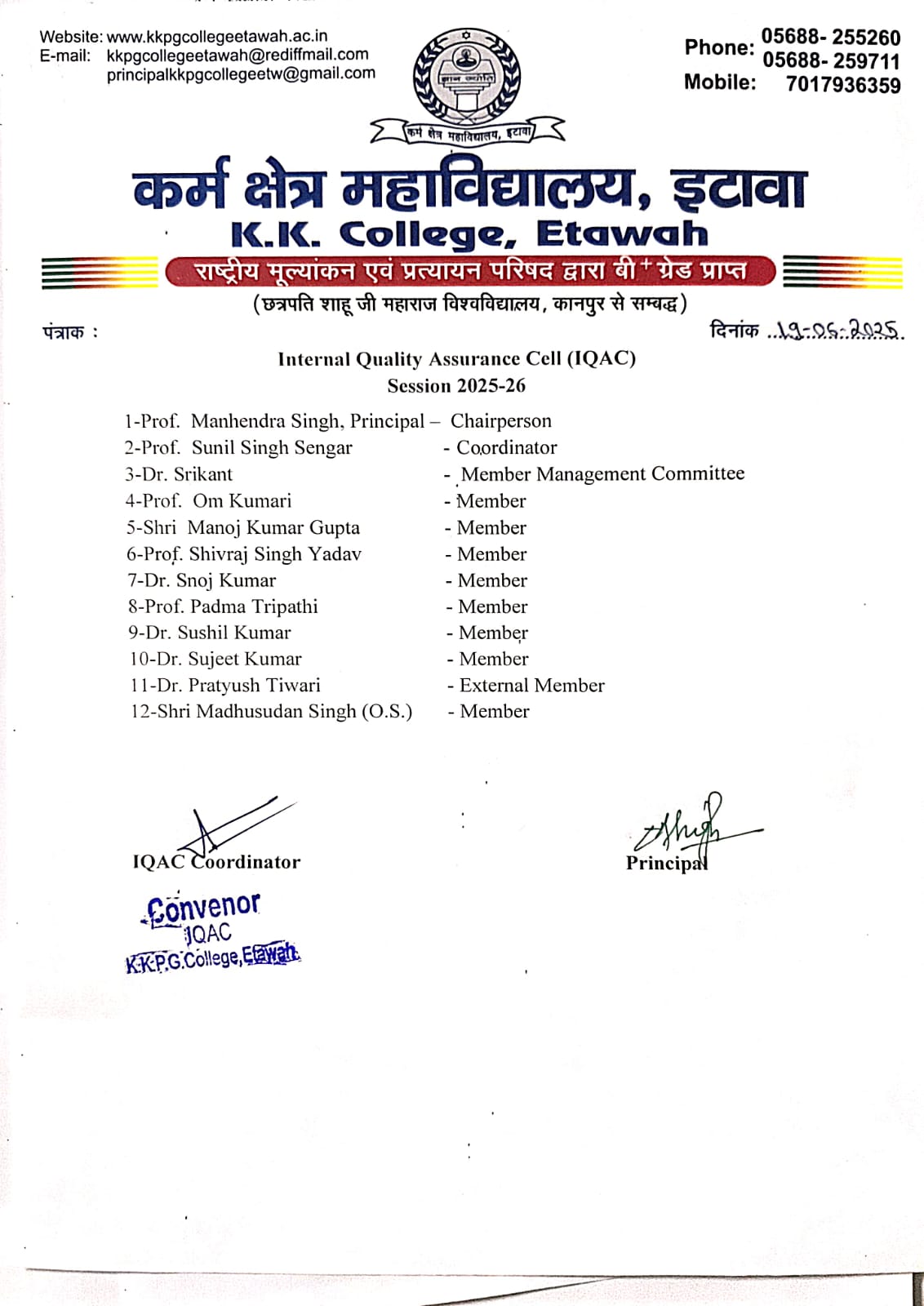 A senior faculty member is appointed as the IQAC Coordinator who functions as the executive head of the Cell. The Coordinator is responsible for planning, documentation, communication with NAAC, and execution of quality-related activities.