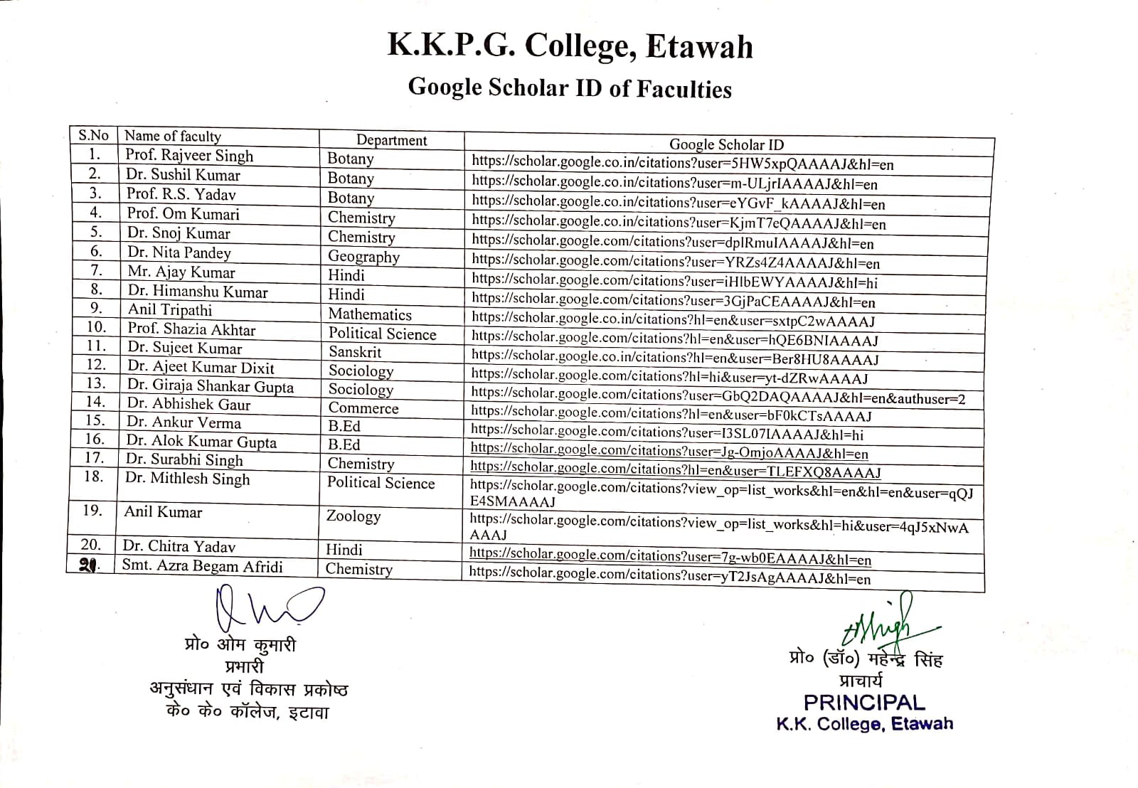 Email id :- kkpgcollegeetawah@rediffmail.com